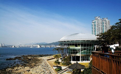 우리나라의 전통 건축인 정자를 현대식으로 펴현한 유리건물과 아름다운 해운대 바다가 멋진 조화를 이루고 있습니다.